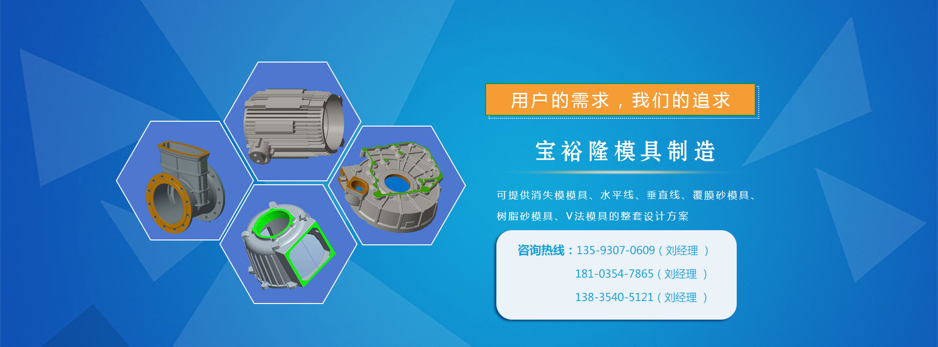 山西宝裕隆模具制造有限公司,创于1998年,位于山西省晋中市平遥县南政乡里村,是一家从事消失模、垂直线、覆膜砂、水平线、树脂砂等铸造模具企业。我们对于公司各部门人员严格要求:要求认真。我公司将产品质量及工作效率放在前面,以可持续发展为宗旨......